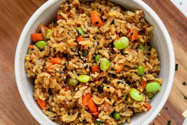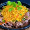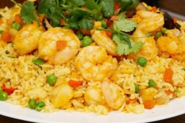 Shrimp, Squid, Vegetable, Pineapple, Raisins, Eggs.